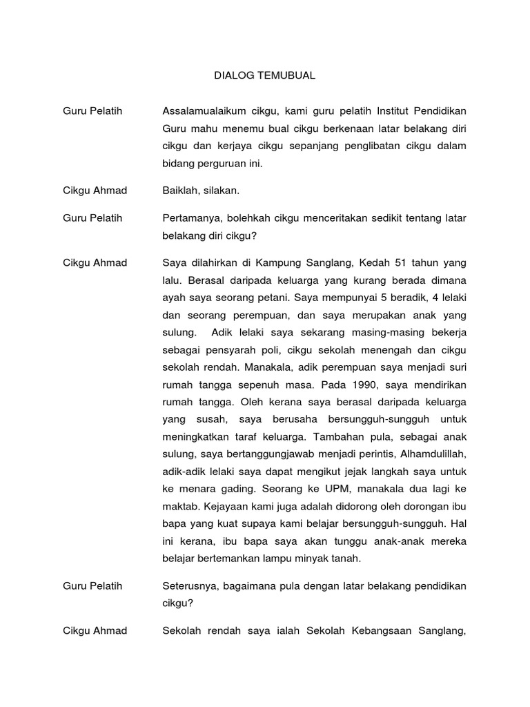Pada tahun lalu aku menghabiskan cuti persekolahan di kampung bersama datuk dan nenek. Contoh transkripsi rakaman skrin dan rakaman perbualan murid mk7 murid yang. Jika bicara proses pendidikan hubungan guru orang tua dan siswa harus menjadi pola hubungan dialogis yang terkoneksi erat secara emosional.